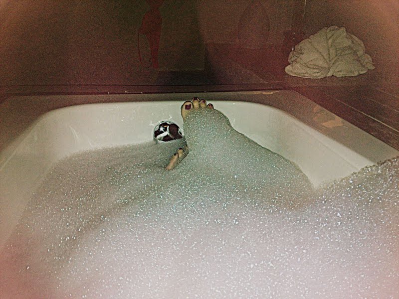 Kicking bubbles while relaxing myself.
