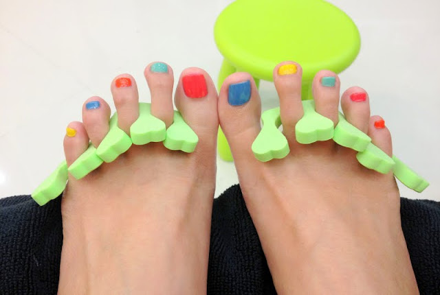 Loving the manicure! The next time you visit a nail parlour, get creative instead of the usual single colour nails, you can have these colourful nails to brighten your day.
