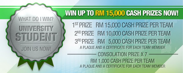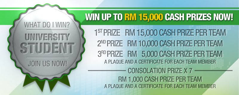 The champion team from the University Students category will walk way RM15,000 cash prize. The runner-up team will receive RM10,000 in cash and the third prize winners will receive a RM5,000 cash prize. All winning teams will receive a plaque each and certificates of participation. Fret not if you didn’t get to win the competition as there are 7 consolation prizes of RM 1,000 cash prize per team!
