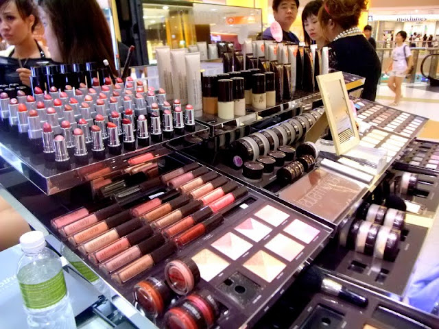 Lips and cheeks are ultra-feminine in shades of warm corals while eyes allure in neutral browns and mauve taupes.