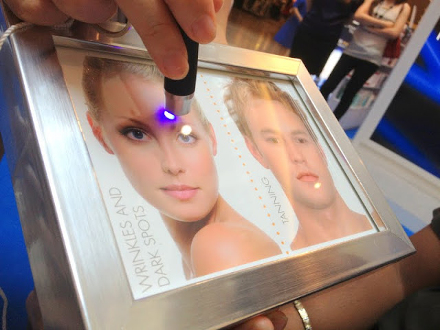 Well we get to witness with using a laser light shine onto the face in the special frame by L’Oréal and after a few seconds we get to see dark spots and wrinkles started to pop up, if we place the laser long enough sunburn starts to take effect.
