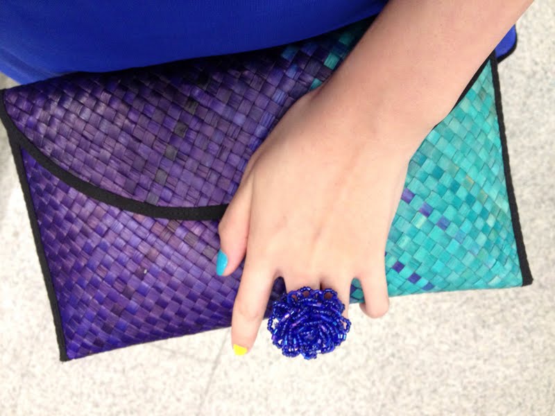 Handmade clutch from Terengganu and beaded ring from Bali.