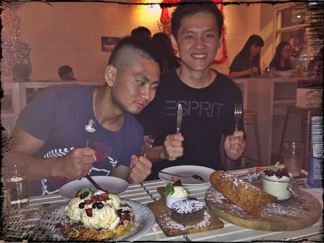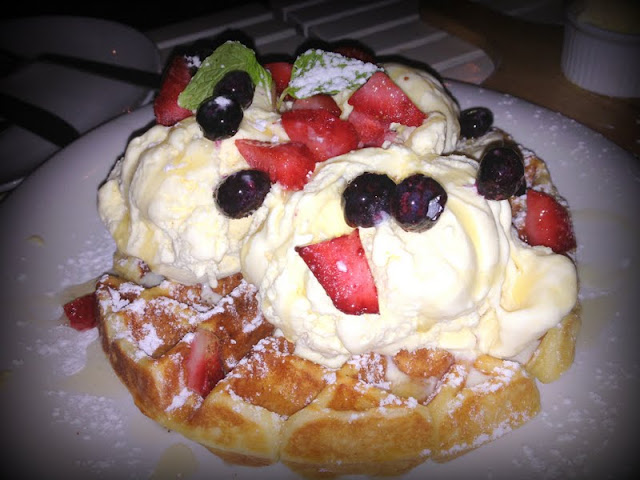 Vanilla Waffles. This dessert is off the menu, specially ordered by Hayden. Only few people know that it exists in Party Play. So if you visit them next time, do mention to the waiter “Vanilla Waffles” to order it as it’s not stated in the menu. Rich with vanilla ice cream, I would say, the most ice cream topped on a waffle I’ve ever seen. with strawberries and black currants with icing sugar.
