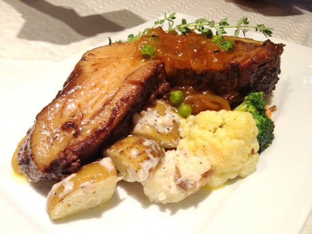 Rich and fatty pork belly exquisitely braised with a medley of spices served with steamed vegetables and a hearty onion and apple sauce. This is my favourite, the tender pork with a combination of fats – just awesomeness!